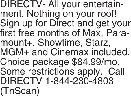 Jan 07, 2026. DirecTV Telecommunications Ads from East Tennessee Services