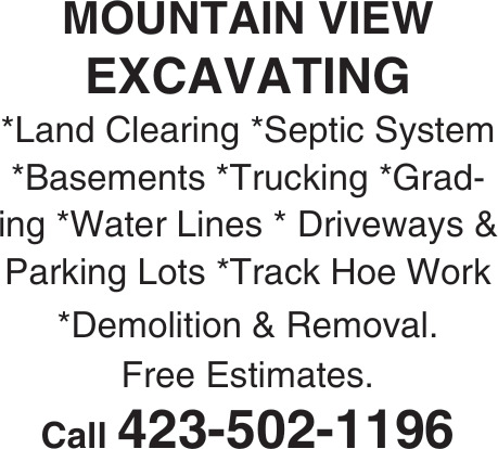 Mar 11, 2026. Mountain View Excavating Excavating Ads from East Tennessee Services