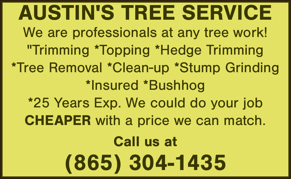 Mar 15, 2026. Austin's Tree Service Tree Ads from East Tennessee Services