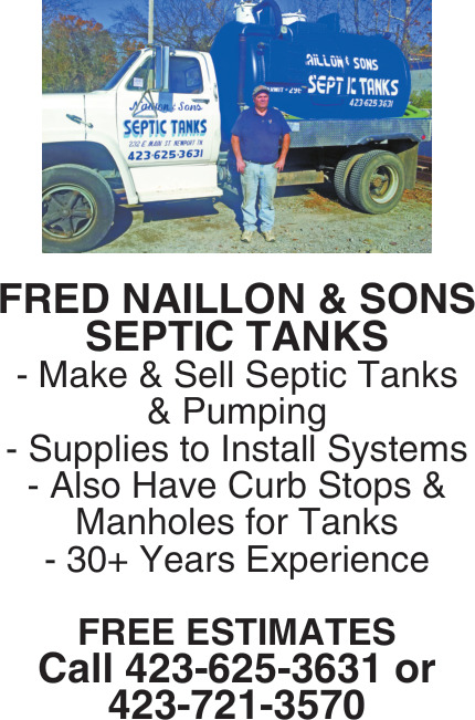 Ads for Fred Naillon & Sons Septic Tanks in Newport, TN