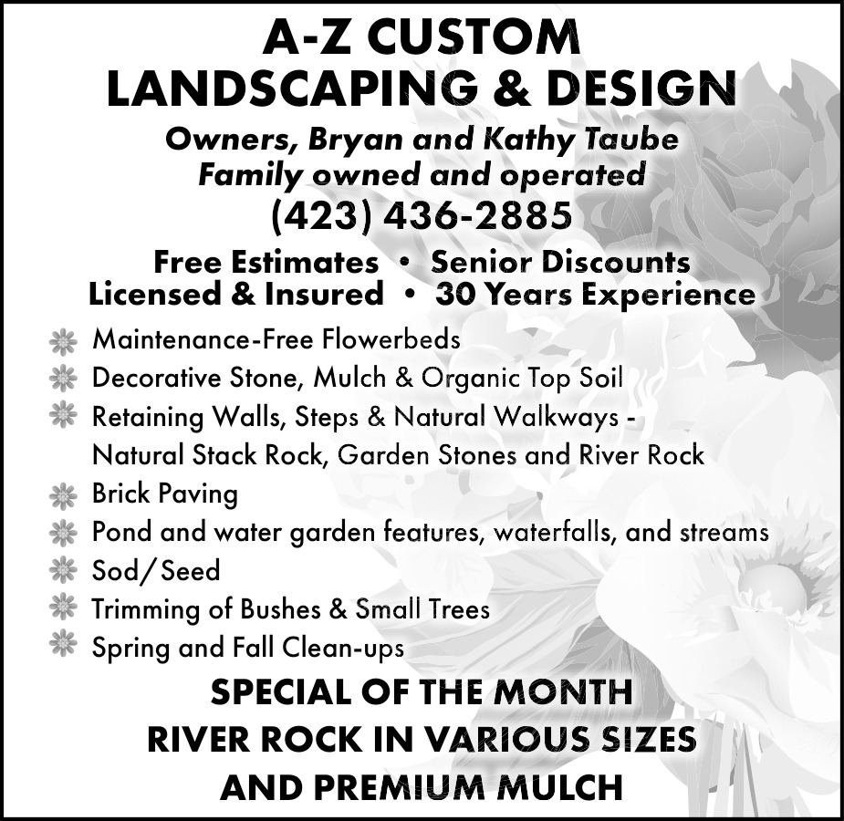 Apr 08, 2026. A-Z Custom Landscaping & Design Landscaping Ads from East Tennessee Services