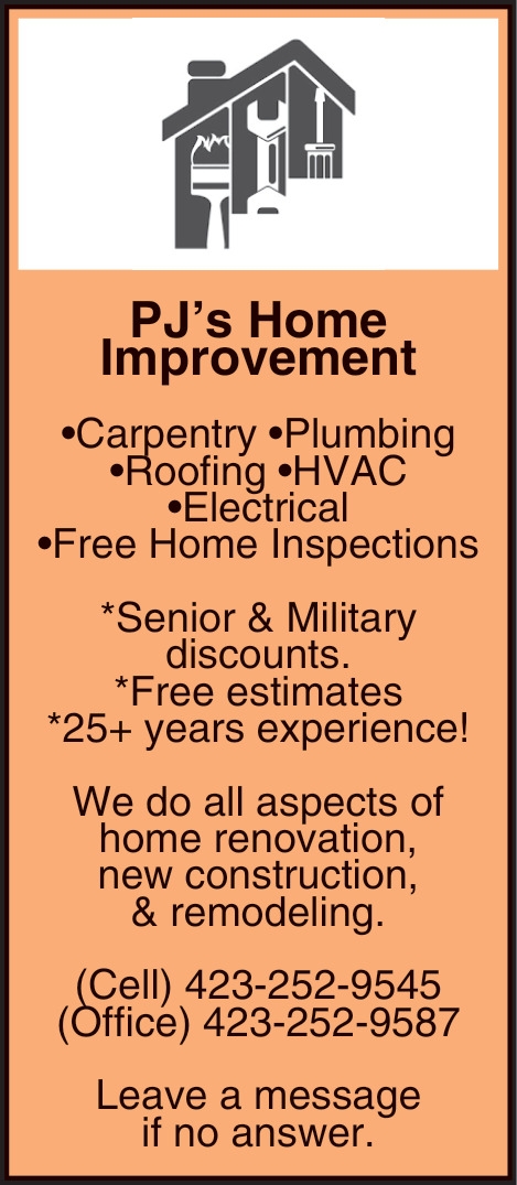 Oct 17, 2024. PJ's Home Improvement Home Improvement Ads from East Tennessee Services